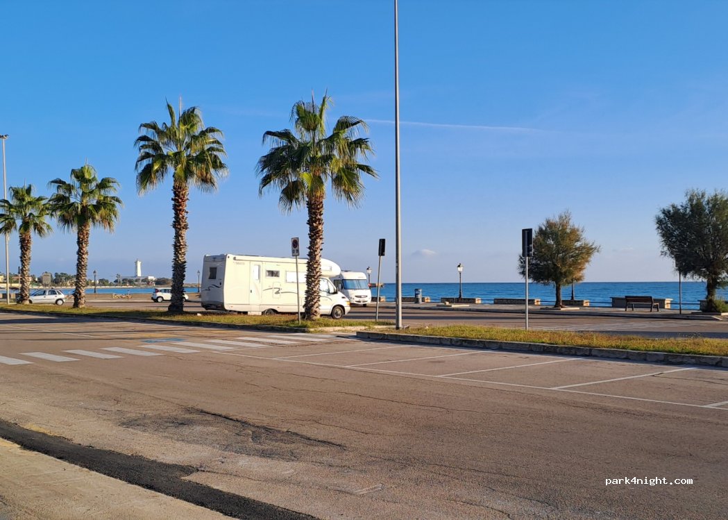 Stayed the night as a good option when visiting Lecce. No facilities but 10m from the sea in a large tidy free car park, quiet during the night. Probably busy in summer but ideal out of season. We are 7.5m and found a slot ok