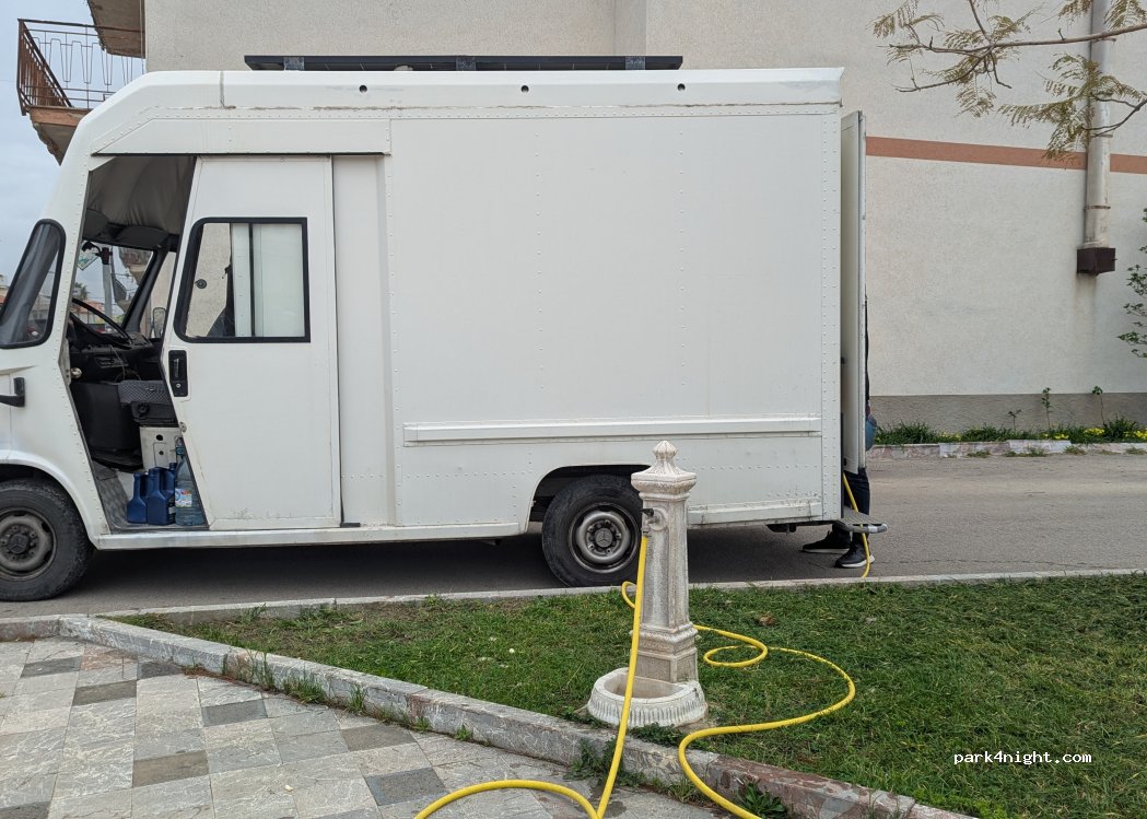 Easily accessible water source with a hose. NOTE: there's a level crossing 3.5 km west in Sant'Agata di Militello. Otherwise in the area, the height limit to (under-) cross the railway is usually only about 2.0 meters.