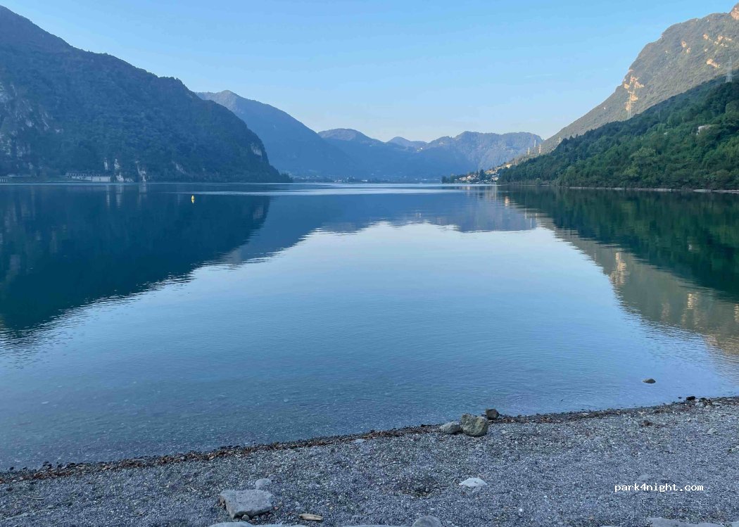 Excellent emplacement au bord du magnifique lac d'Idro. C'est assez rare de trouver des spots gratuits dans des lieux aussi enchanteurs. Agréable balade possible le long du lac et plages. En cette période, et en semaine, l'endroit était très calme, mais cela doit cependant être bien différent en plein été.