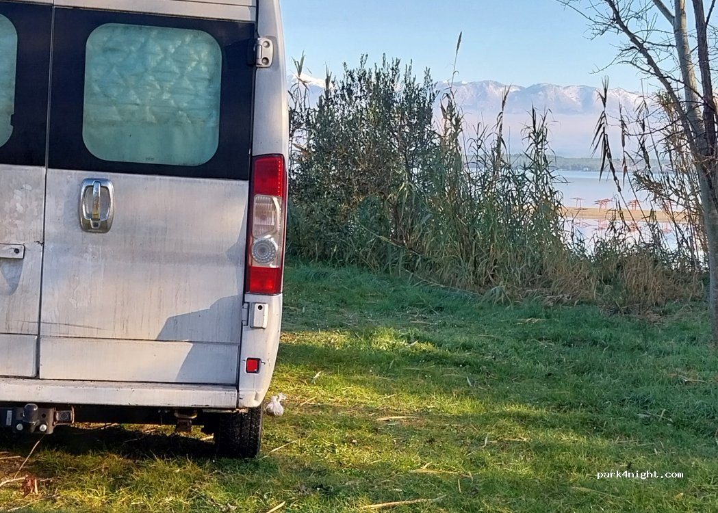 mooi uitzicht, maar de voorzieningen zijn gesloten, Zet de camper maar neer, de baas komt zo afrekenen, werd gezegd. Maar we hebben hem niet gezien.