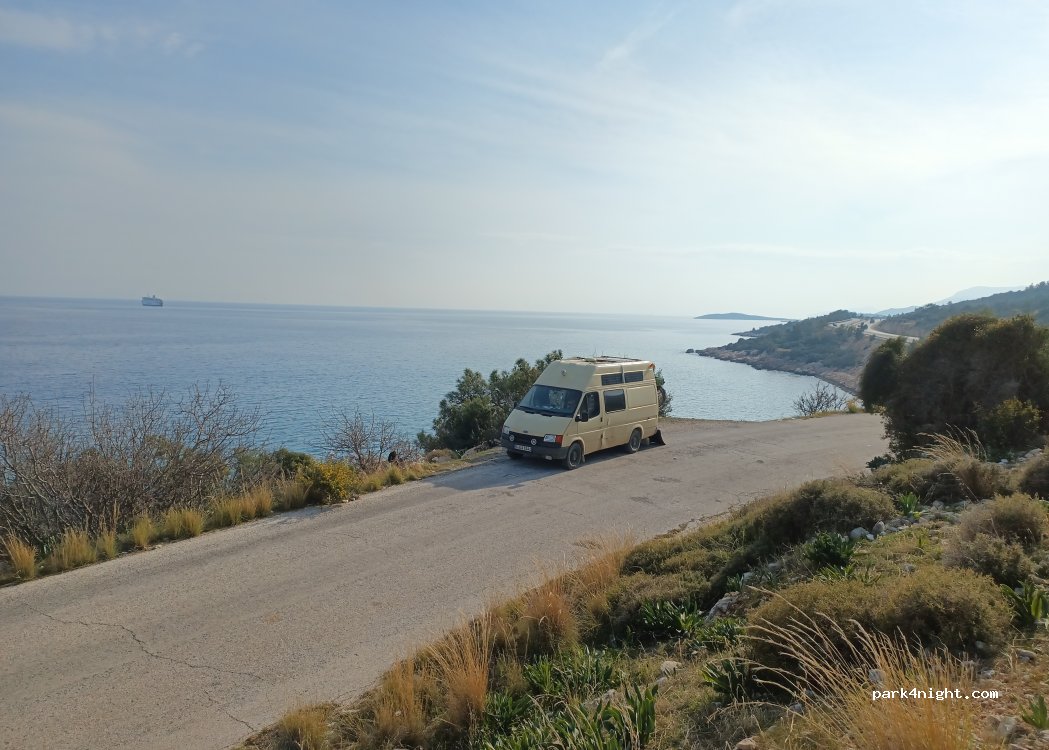 Juste à côté de d400 J'ai trouvé cet endroit par hasard en cherchant le camping situé plus loin sur la route en attendant le ferry pour Chypre. J'ai été garé ici deux nuits de suite. Il y a un peu de bruit de la route mais rien de mal. C'est très paisible jour et nuit, pas d'installations, mais un bon endroit avec un terrain plat pour tous les besoins de Vanlife