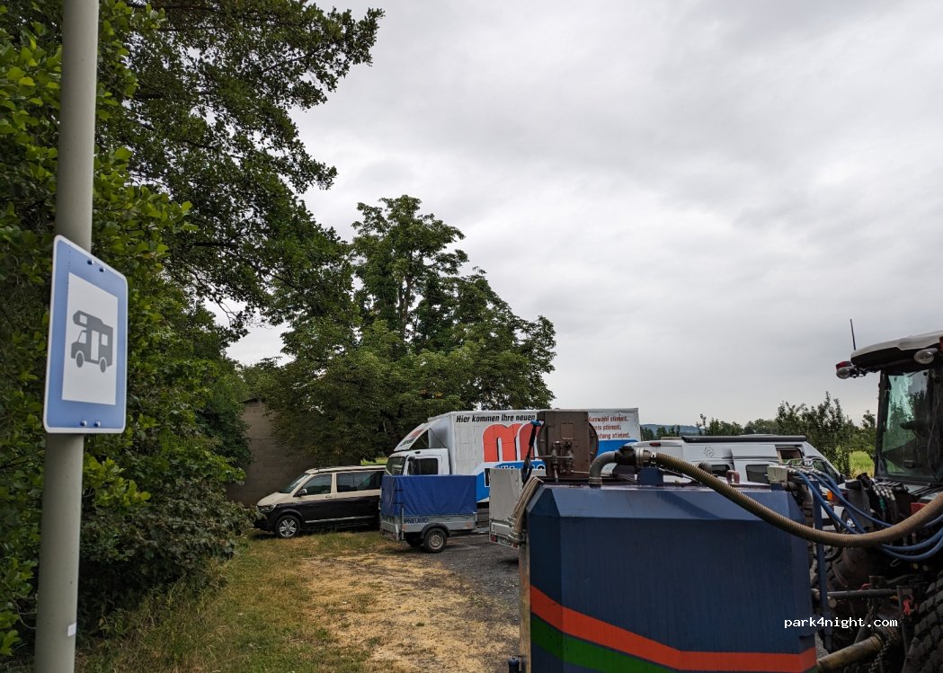 Car park signposted for campers at the entrance to Glauberg. Offers nothing but space for larger mobiles. Starting point for bike tours and hikes in the floodplain to see the storks and Heck cattle. Celtic world of Glauberg nearby. There own PP with overnight stay option.