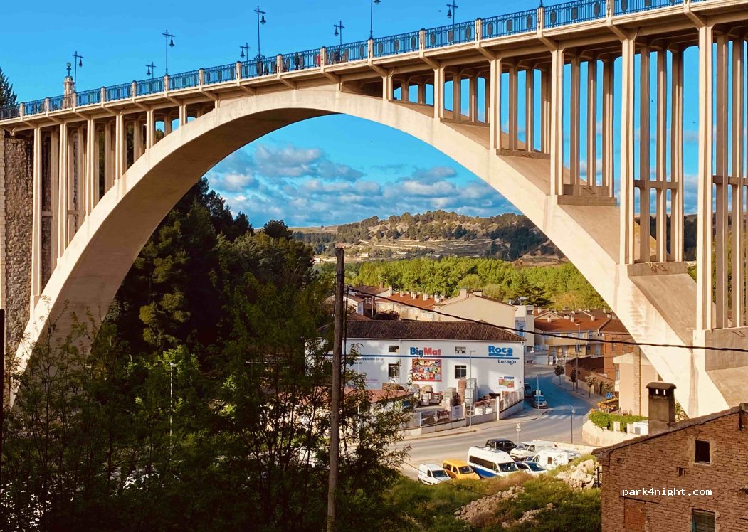 Después de ver algunos de los sitios recomendados en Teruel, fui a ver éste, pero me quedé un poco más arriba, en la discreta "rotonda" de un parque circular con columpios. Es el parque de San Antón. Hay una fuente, mejor sombra y cubos de basura. Me pareció más seguro para dormir, y un poco más resguardado del ruido de los coches.
