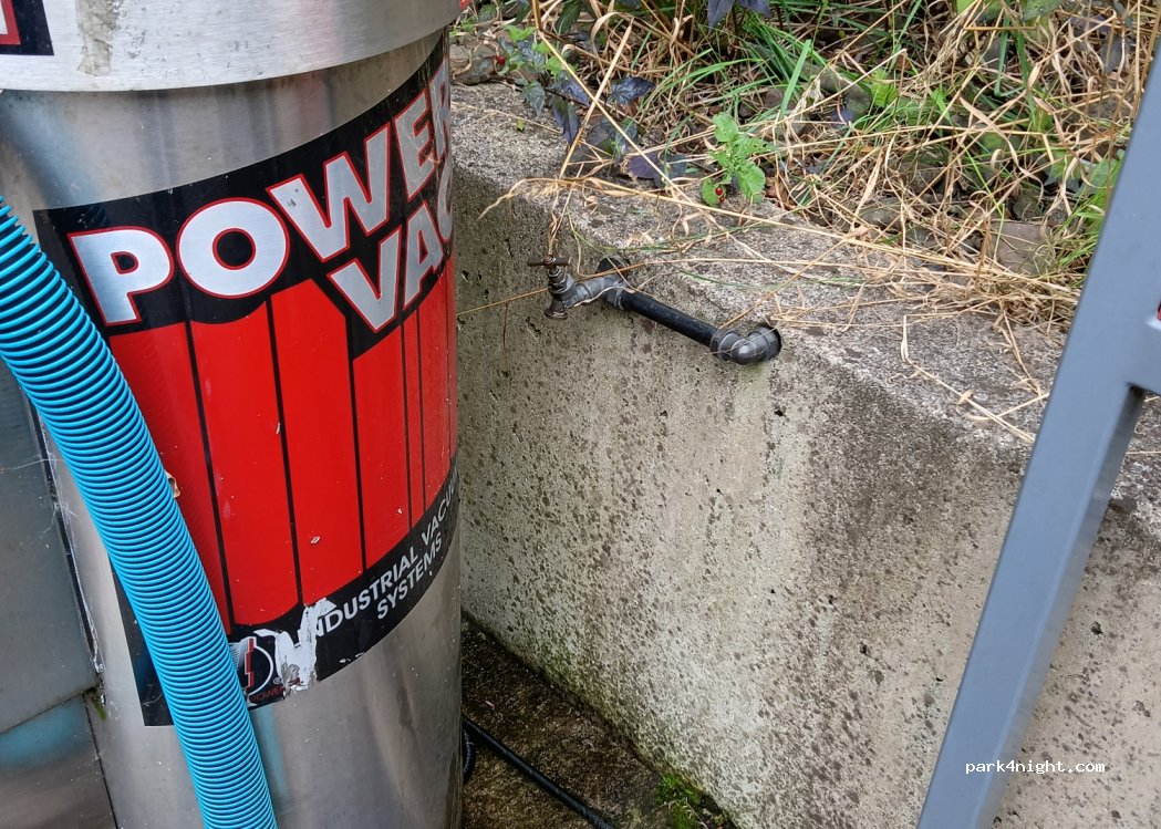 Gas station with water supply (not potable) and gas bottles. Requires own hose.
