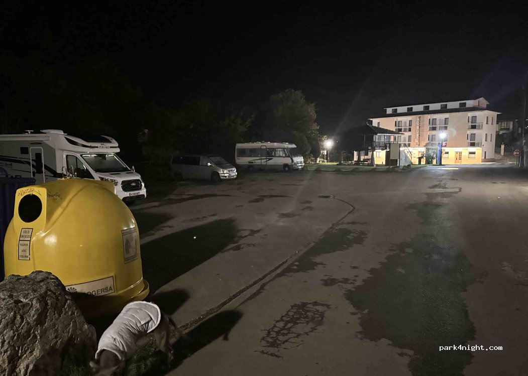 Parkin para 5 o 6 AC. Está bastante expuesto. Llegamos a las 8 de la tarde y no pasó nadie por la calle. Hemos cocinado fuera y comido dentro, no sé si algún vecino pondrá problemas al sacar una mesita fuera