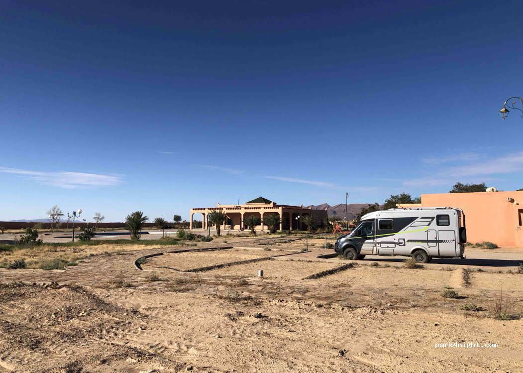 Eigentlich handelt es sich nicht um einen Campingplatz, sondern um den Parkplatz einer Unterkunft. Grauwasser Entsorgung, wenn dann nur am Straßengulli, Toilettenentsorgung, wenn dann nur, wenn einem eine Gäste Toilette eines Zimmers geöffnet wird, Frischwasser Versorgung über die Gartenbewässerung. Wenn man vergleicht, dass man sonst meist auch 100 DH bezahlt, relativ viel für den Standard.