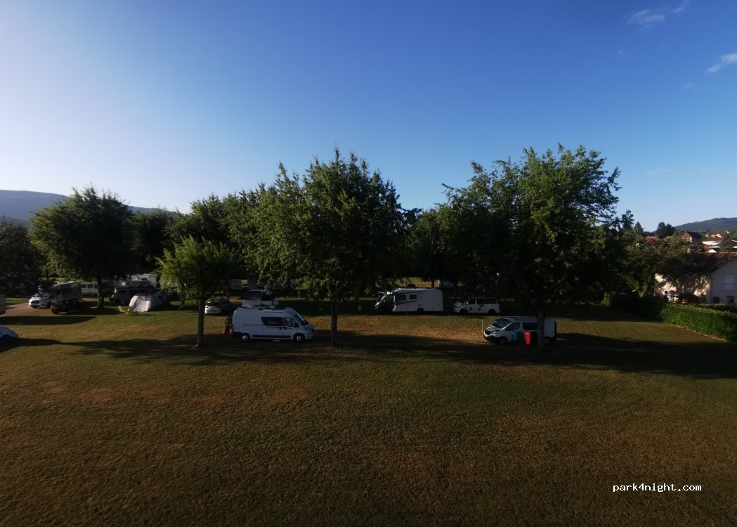 All pitches are on grass, relatively flat, sunny, and clearly marked, with an unobstructed view of the mountains. All pitches have a 6A (1200W) electrical outlet. Air conditioning and other energy-consuming appliances are not permitted.