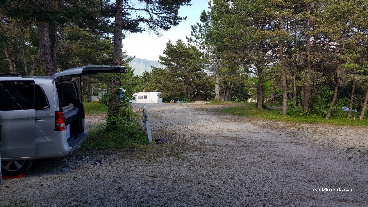 ci siamo fermati una notte al volo in transito verso la provenza. arrivati c'era la sbarra aperta e nessuno in giro, sulla lavagna scritto di sistemare il camper in una piazzola e poi chiamarlo. gentile, passa sulla fiducia la mattina dopo. piazzole ampie con pineta, molta privacy anche se eravamo gli unici! ottimo