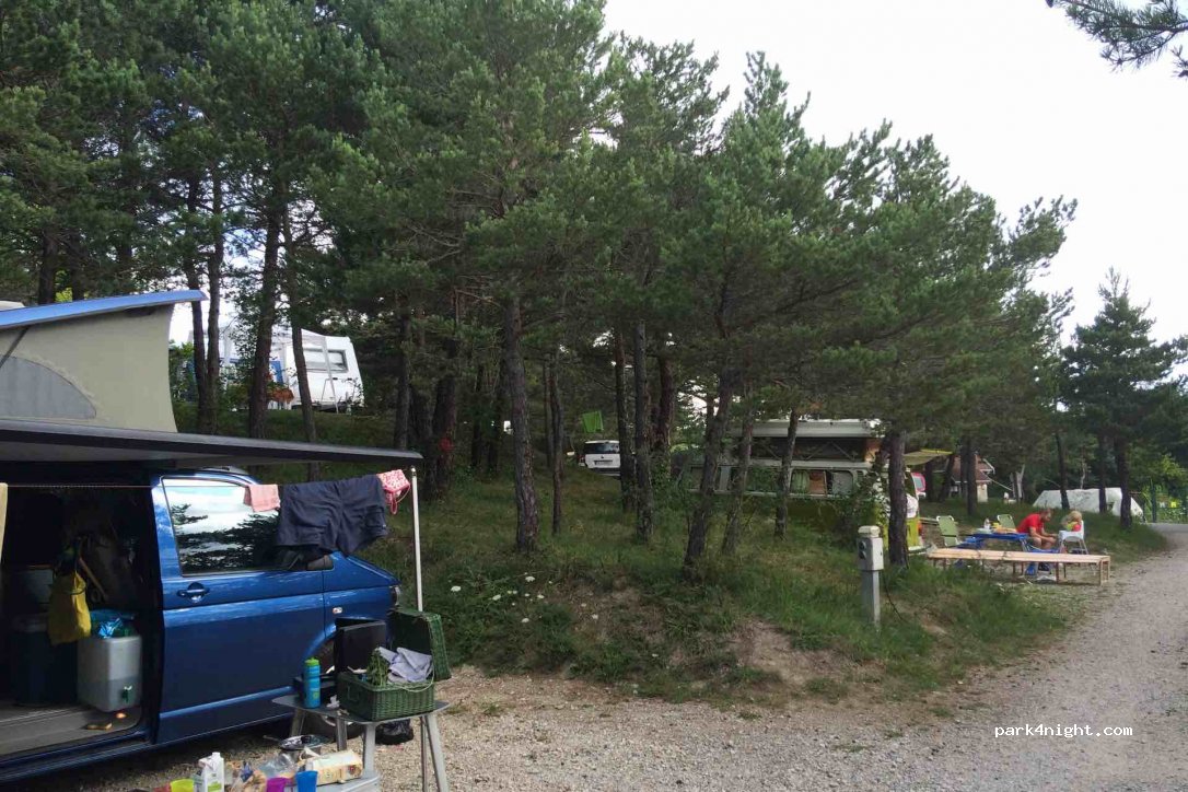 Toller Platz, mitten im Wald. Man hat gut seinen eigenen Space, freundlicher Besitzer, bei dem man auch mit Englisch weiter kommt. Pool und mega Aussicht. Preis völlig ok. 4 Personen mit Van und extra Zelt. inkl. Strom 33 Eur.