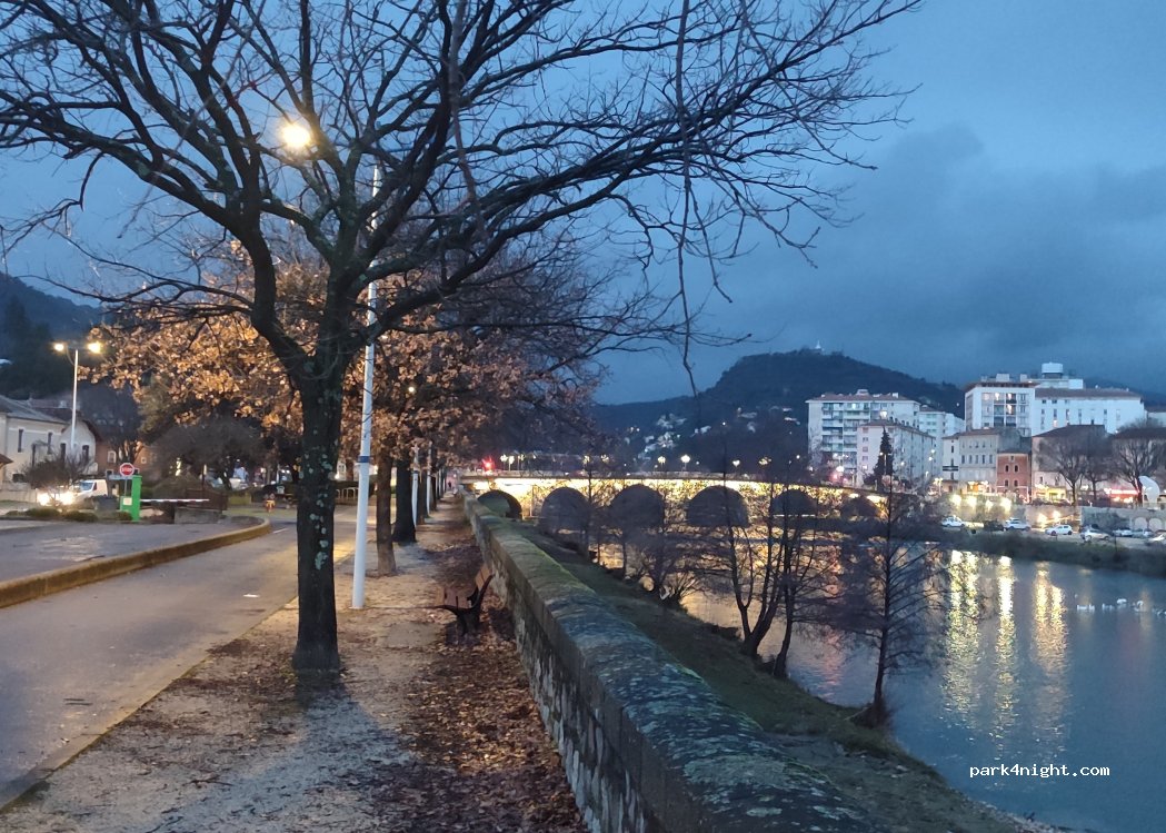 Merite que l’on fasse un large détour. L’espace est le prolongement s’un parking payant. A quelques encablures du centre-ville. Bruyant le jour et très bruyant la nuit entre la fête foraine et les fêtards se retrouvant le long du gardon avec leur sound system. Boule kyes ou casque anti-bruit recommandé.