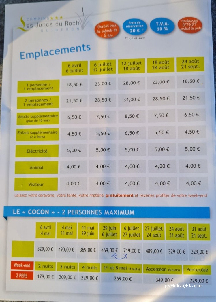 Camping Les Joncs du Rochs. Kleiner Campingplatz mit anständiger Stellplatzgröße. Sehr saubere Sanitäranlagen, beheizte und saubere Schwimmbäder. Fehlender Lebensmittelladen vor Ort, Innenstadt zu Fuß in 20 Minuten erreichbar. Kleiner Strand 500 Meter entfernt mit viel Rotation von Flugzeugen.