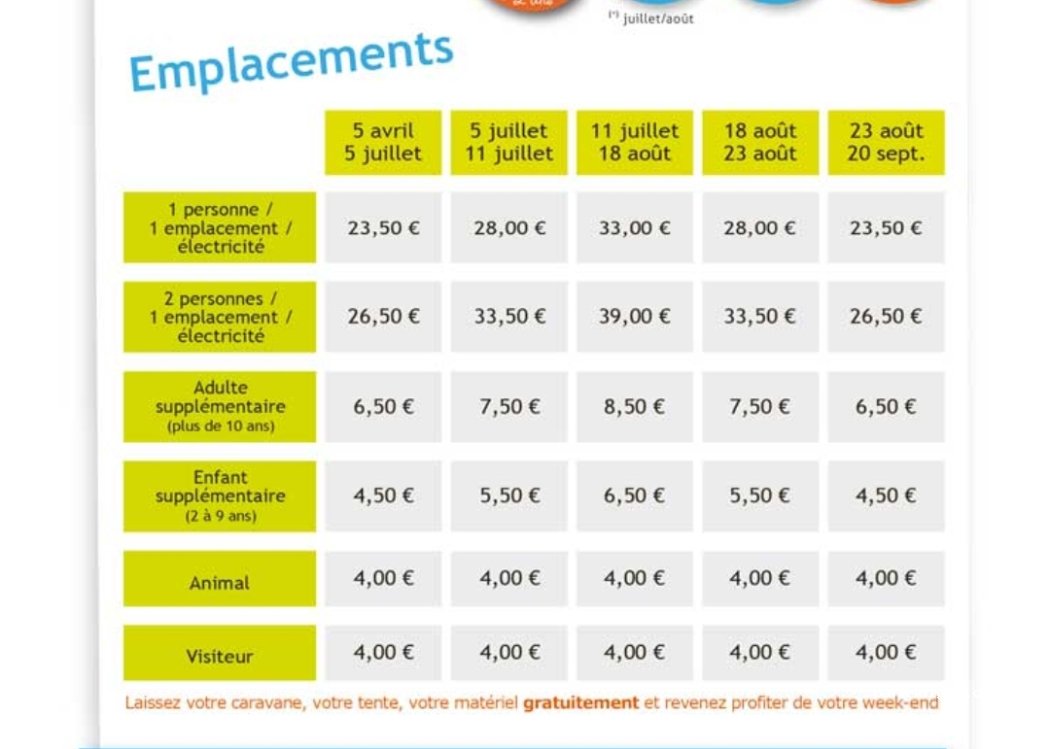 23.50€-33€/pitch/person with electricity