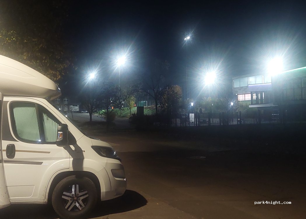 Large car park at the indoor pool/sports field. Very quiet. No restrictions whatsoever. Good starting point for bike tours on the Moselle and Saar. Two pizzerias and a restaurant nearby.