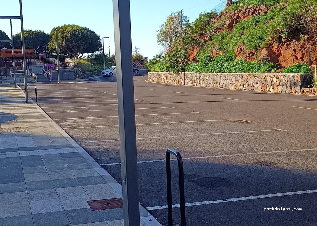 Plazas de aparcamiento, zona de descanso ideal para autocaravanas, unas 10 plazas quizás, parque infantil, gimnasio al aire libre, supermercado cercano