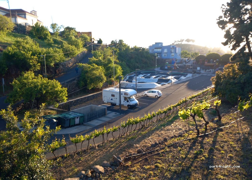 Parkplätze, Rastplatz ideal für Wohnmobile, ca. 10 Plätze vielleicht, Kinderspielplatz, Outdoor-Fitnessstudio, Supermarkt in der Nähe