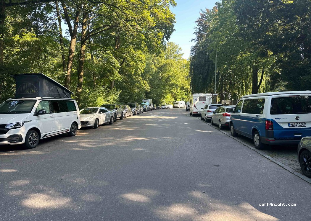 Hemos dormido 1 noche de paso para visitar la ciudad de Munich! La calle es gratuita y está justo en el limite del parque inglés. Calle muy tranquila, donde hay más campers y AC! Todo un acierto