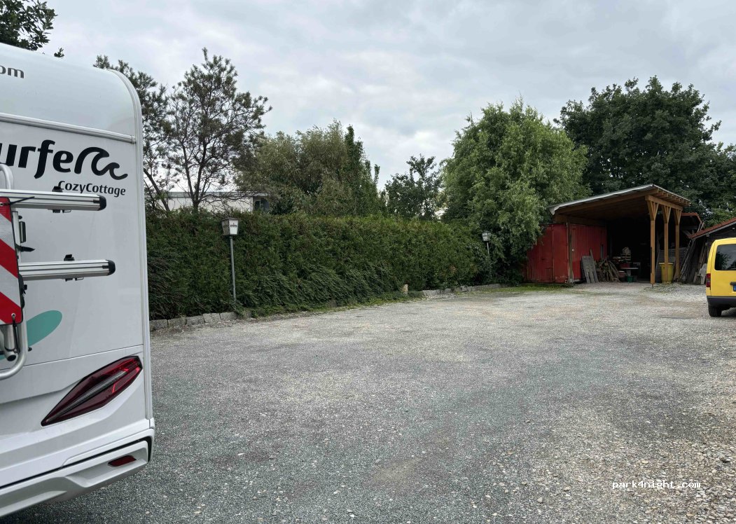 Kleiner Schotterplatz direkt am Restaurant. Keine Keile notwendig. Sehr nette Gastgeber, Essen war mega lecker. Bei Verzehr im Restaurant ist der Stellplatz kostenlos ohne Strom. Strom würde 5€/24h kosten, haben wir nicht gebraucht. 2km zur Autobahn, man hört aber nichts in der Nacht, liegt sehr ruhig im Industriegebiet. Optimal für eine Zwischenübernachtung. Wir empfehlen es sehr gerne weiter!