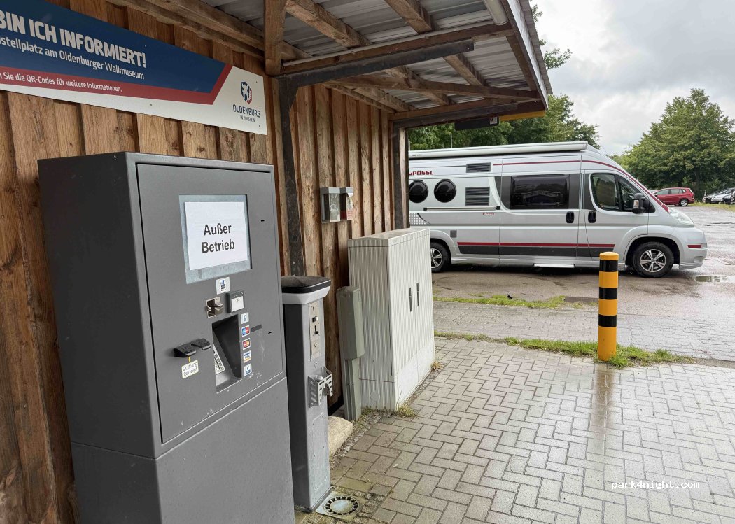 Eight paid RV parking spaces are available for overnight stays in the parking lot of the Oldenburg Wall Museum. Arrival and departure are possible at any time. Registration is via a kiosk. Quietly located, just a few minutes' walk from the city center. The parking lot also offers approximately 10-12 free RV parking spaces during the day from 8 a.m. to 8 p.m.