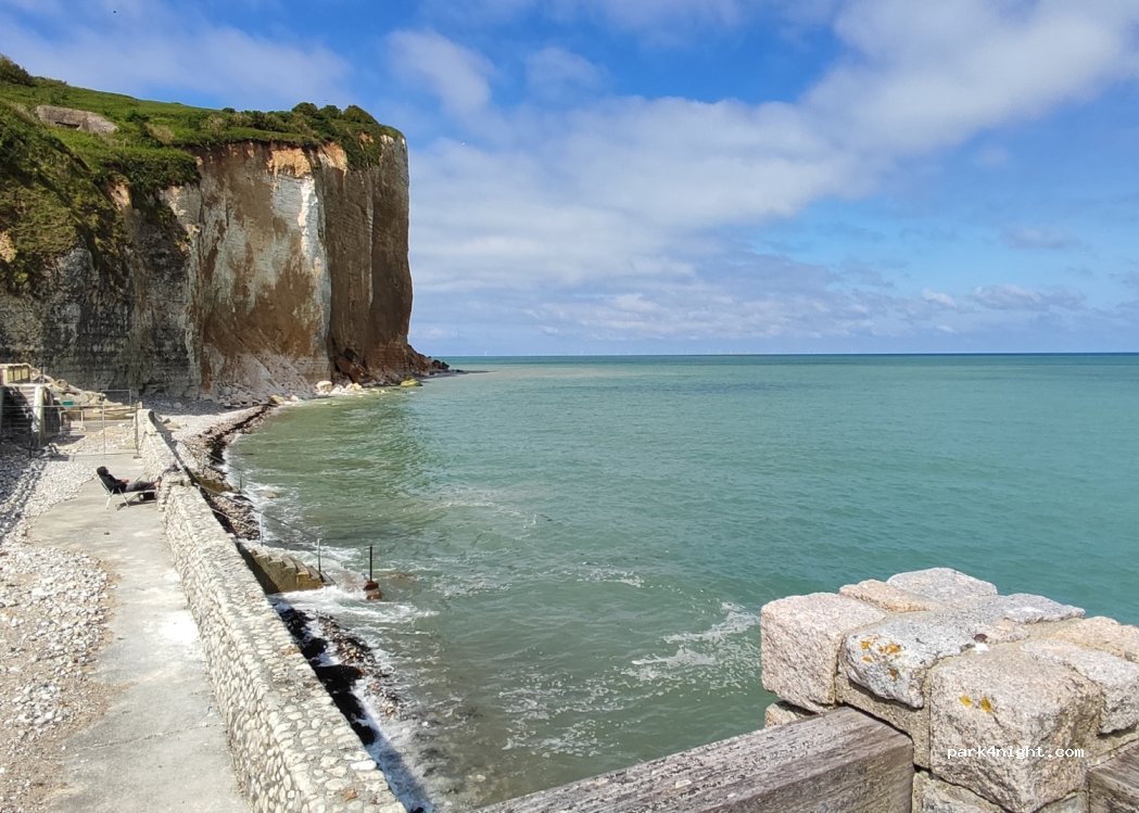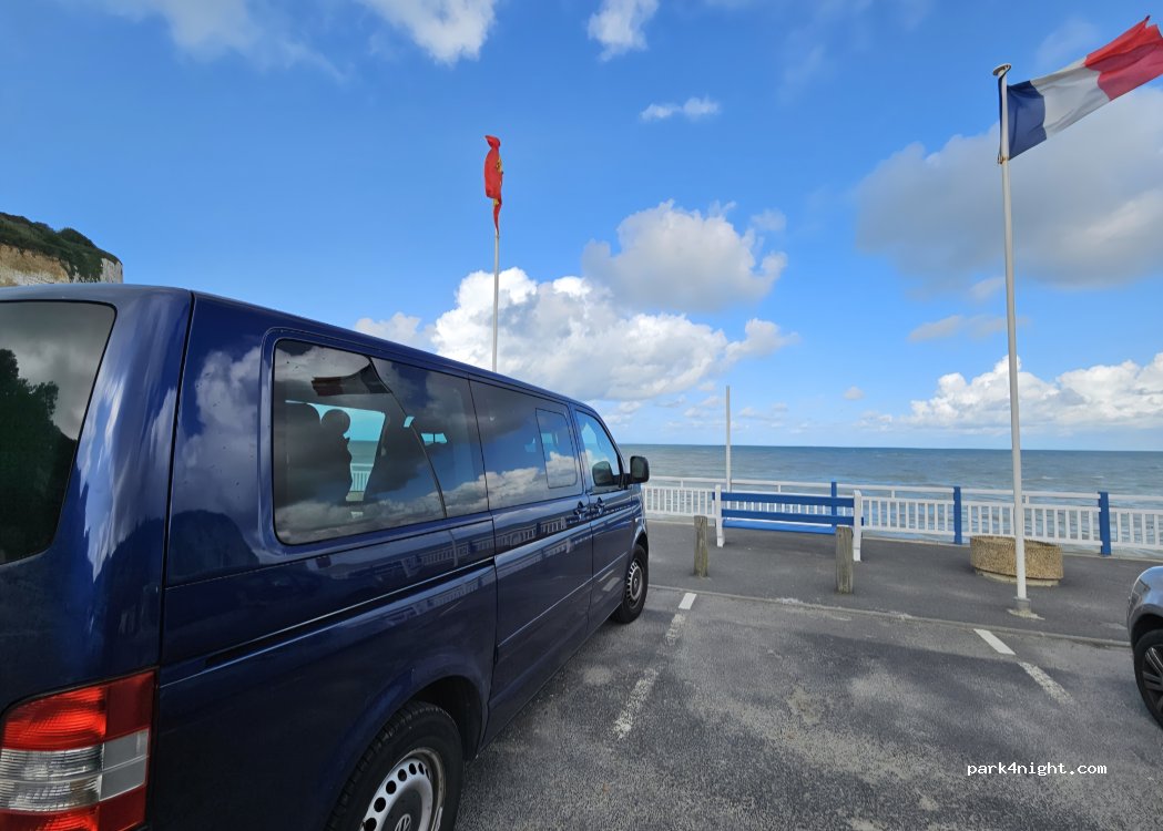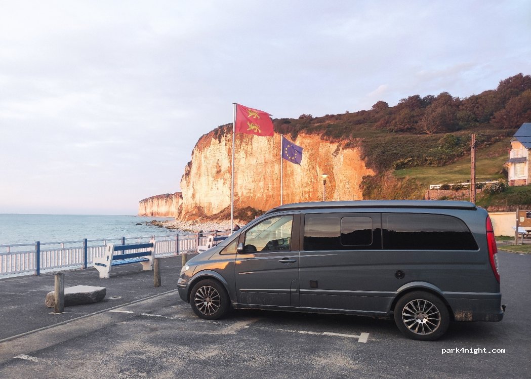 Grand parking sans toise. Superbe vue sur la mer et les falaises. Camping interdit.