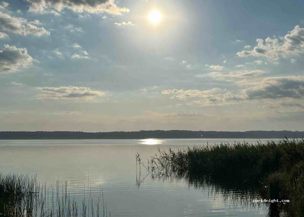 Aparcamiento cerca de una pequeña playa en el lago y en el bosque. Aproximadamente 1,5 km de camino de ripio. A partir del verano de 2021 no se puede nadar, las algas florecen en el agua.