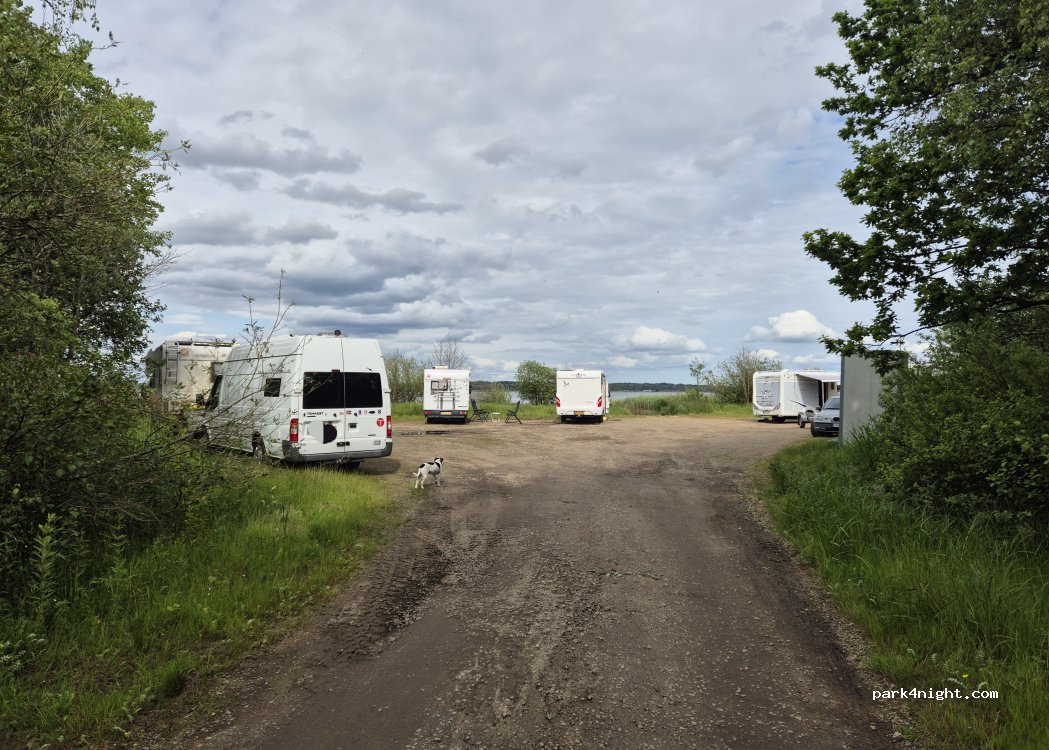 Dies ist ein Platz um Boote ins Wasser zu bringen, also bitte in die Wiese stellen ! schöner platz aber mit 6 Autos etwas voll, wegen eines Campers hatten es die Anwohner etwas schwer ihr boot ins Wasser zubringen, Meine Schedischen Nachbarn stehen mit ihrem 8,5m Womo ohne probleme hier ein Stern Abzug weil es gegen Abend so voll wurde