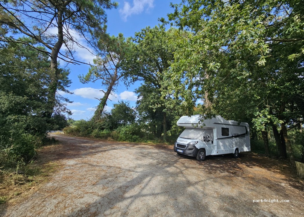 Emplacement en pleine nature dans les bois et à côté de la mer. Proche des plages et d'un circuit de rando qui amène jusqu'à la pointe du Blair ! Nous avons un CC de 7m de long et aucune gêne pour se garer et trouver une place. Arriver tôt le matin où fin de journée car sinon il y a des voitures. Pas de poubelles, une table de pique-nique, endroit ombragé. Nous sommes restés la nuit, très calme.