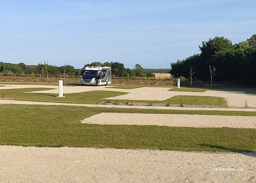 Aire nouvelle mais qui a tout pour séduire ! emplacements confortables (gravier/herbe). Certes les commerces sont un peu loin, mais dans un CC n'avons nous pas tout ce qu'il faut ?... 15,10 € /24h, électricité incluse ! Info : si vous avez besoin d'eau, allez remplir dès que vous avez payé ! Pour les adeptes du calme, de la nature et du confort. Merci M. Le Maire.