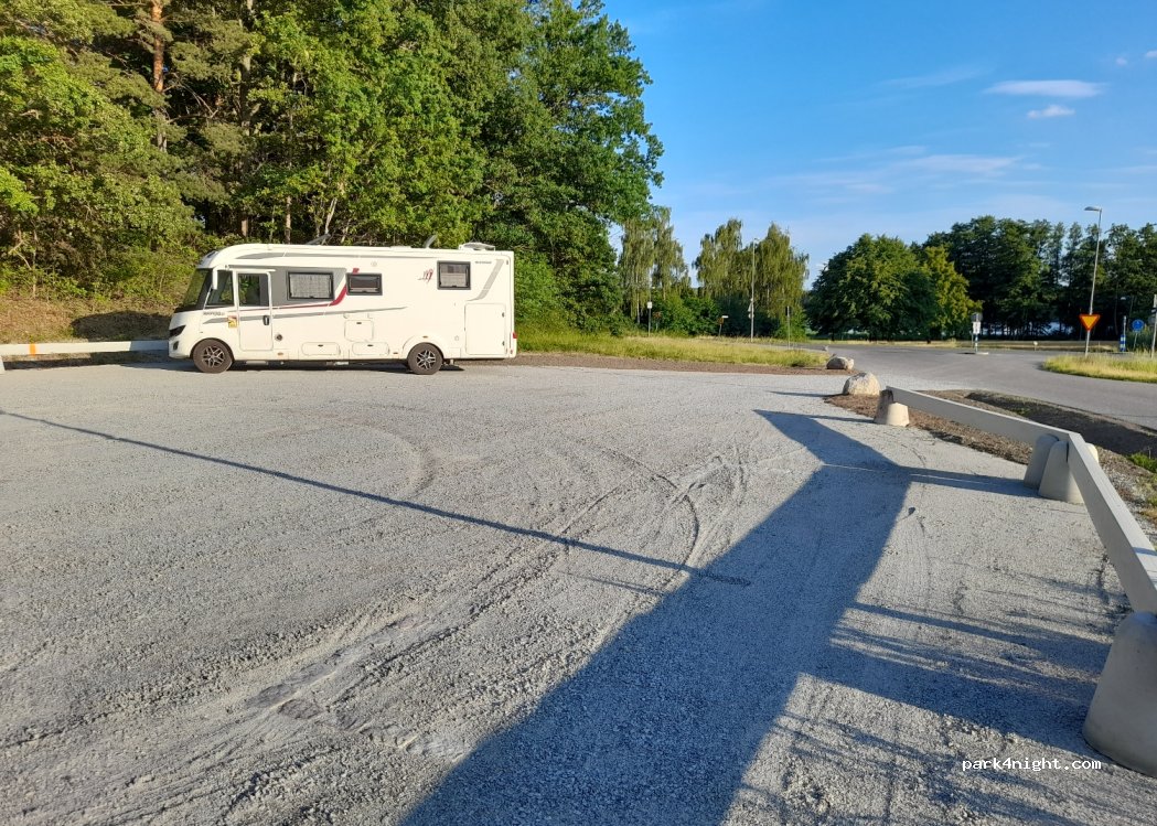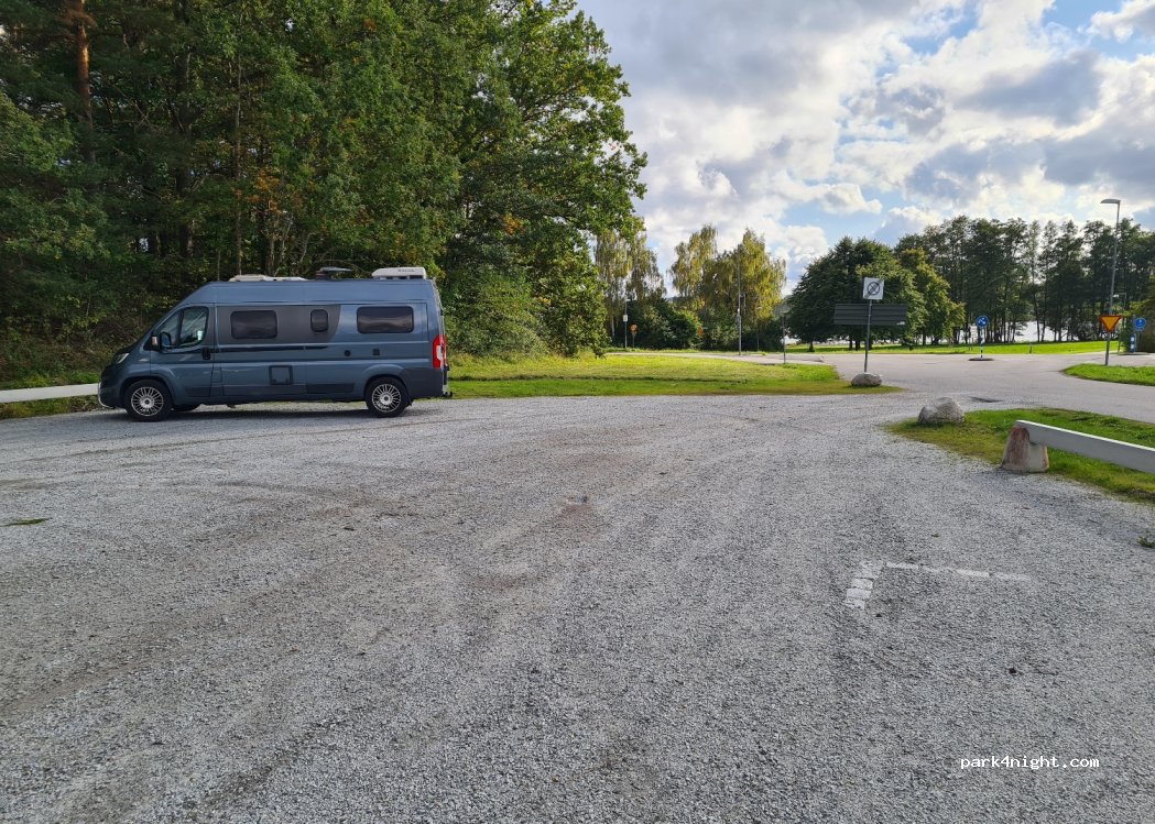 Asfalterad yta med plats för 12 husbilar. Platserna är ganska små, så det blir svårt för bilar över 7,5 m att få plats. Annars väldigt fint ordnat.