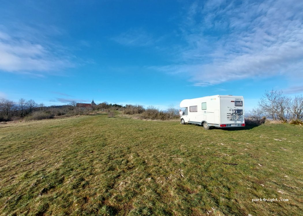 Wunderschöner Platz direkt neben der Kapelle. Tolle Aussicht in die Umgebung. Sehr ruhige Lage. Es könnte sein, dass im Sommer an Wochenenden hier mehr los ist, da es auch öffentliche Grillstellen gibt. Ansonsten selten so ruhig geschlafen