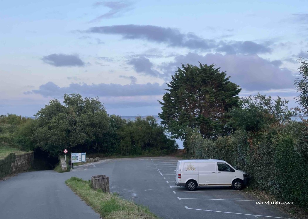 premier utilisateur de l'application et top je me suis posé sur ce parking ou la plage et propre et tranquille, nous étions 4 véhicules, calme et goudronnée je conseille je suis arrivé à 19h et de la place disponible pour me stationner, poubelle de la commune pleine c'est dommage sinon j'ai dormi comme un loir