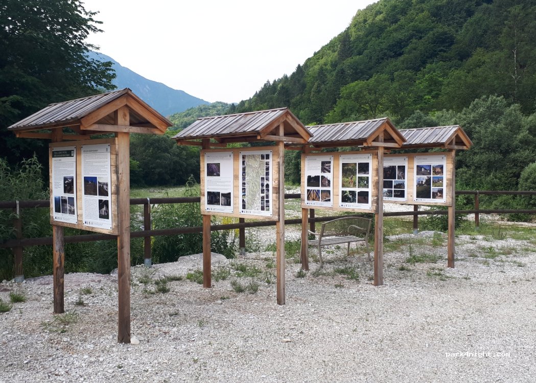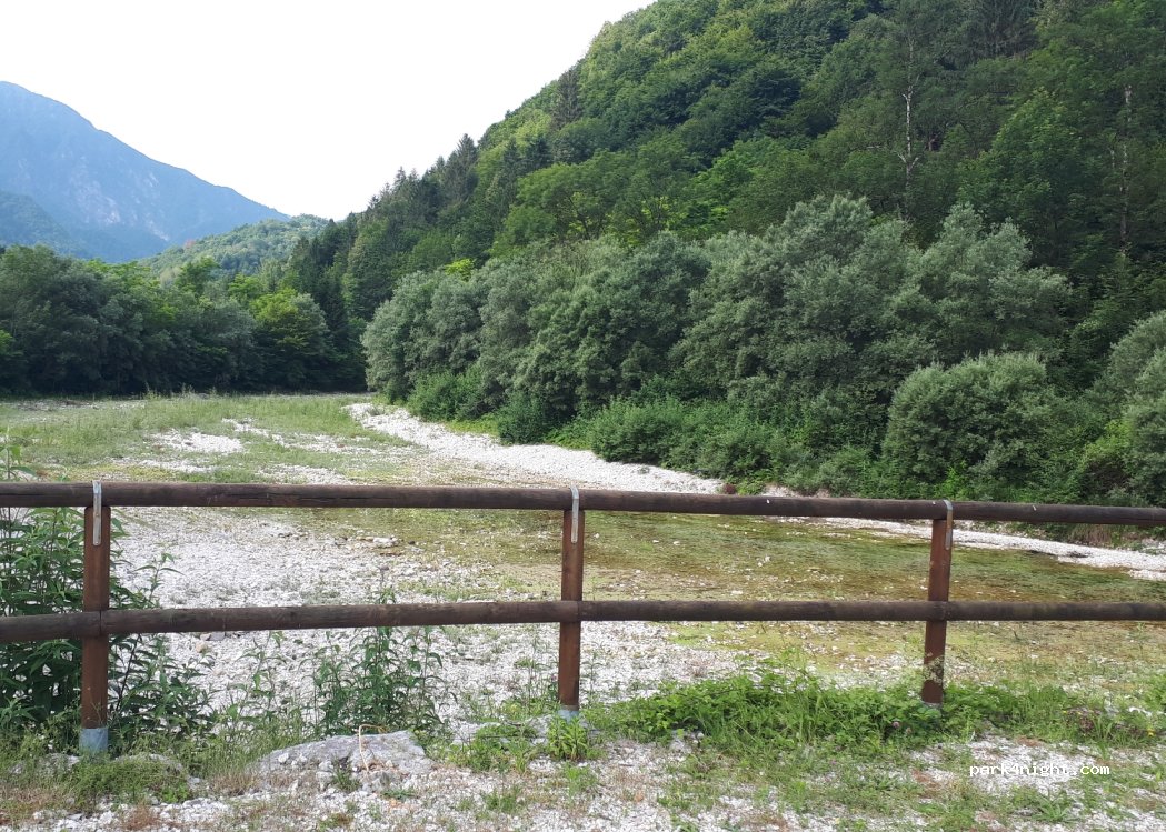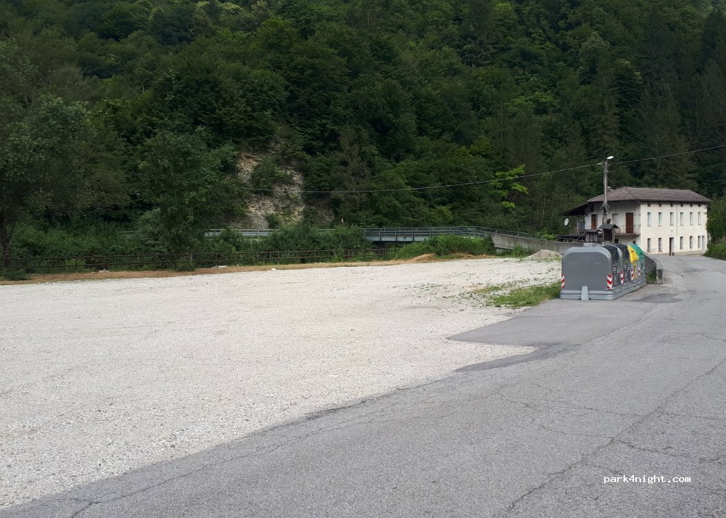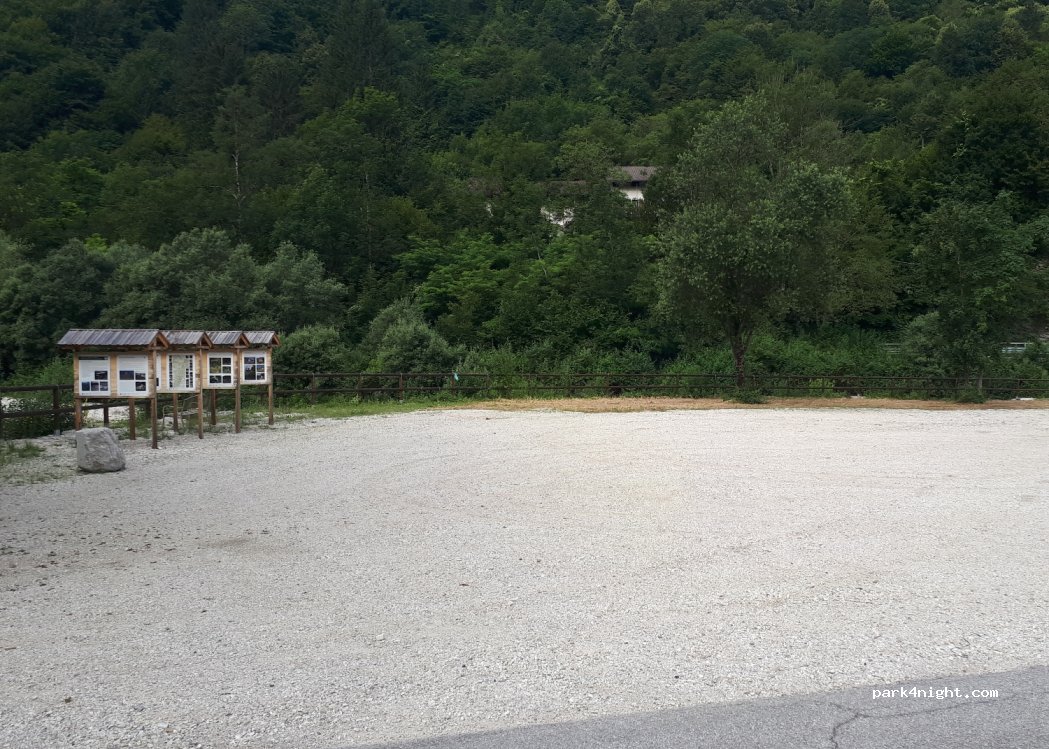 Großer, ebener Schotterplatz am Fluss, sehr ruhig gelegen und Müllcontainer vorhanden. Anfahrt über eine schmale Straße (max. 7 m Fahrzeuglänge).