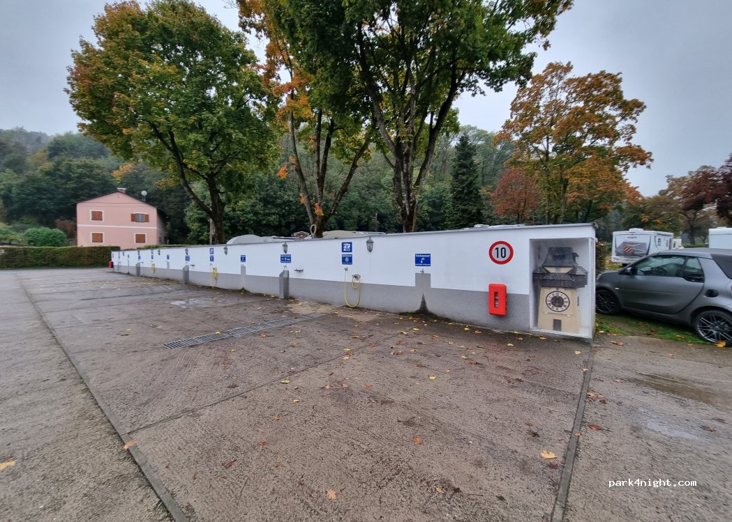 Nice place, with clean sanitary, cash only. Easy to access the bus to downtown. Recommended to buy 24 hr ticket and you can use the funicular as well with your ticket. Shops are a few minute walk, in the summer you can use pool. There is a large parking lot outside of the stellplatz, you can leave your car all day long for free but you cant camp there for the night.