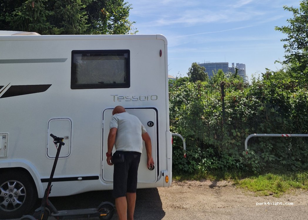 Kostenlose Parkplätze in der Nähe des Schwimmbades. Gut zum Übernachten.