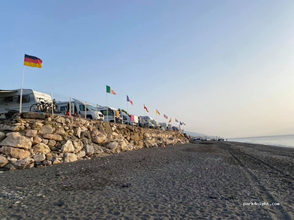 Ganz nett, dass man direkt am Wasser stehen kann. Strand ist aber nicht so schön... Die wenigen Camper sind fast alles Deutsche die da überwintern. Baustelle rechts am Strand die ziemlich laut ist.