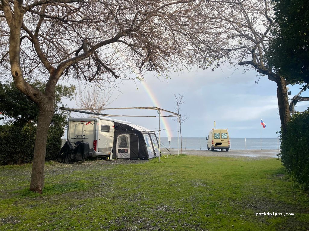 Che dire . campeggio con servizi igienici puliti . il bar è chiuso . il mare e a pochi passi . noi abbiamo parcheggiato fronte mare , anche se li non c'è ombra siamo stati bene . c'è sempre aria , attenzione a lasciare il tendalino aperto senza essere nei dintorni .a noi è successo che in un attimo si è alzato il vento forte . oggi 26 /08 / 2021 abbiamo pagato 41 euro e siamo 2 adulti con 2 bambi