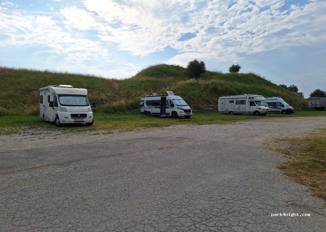 Area ampia, silenziosa, pulita, sicura e gratuita. Non ha servizi ma è un'ottima base per vistare Palmanova. Attenzione alle altezze passando attraverso alcune porte della città. Consigliato!