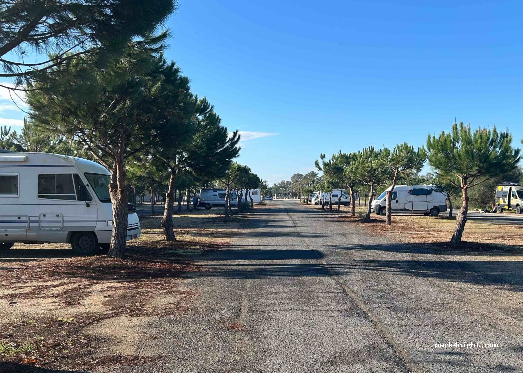Parking immense, plat et vide. Très calme et pas de passage car c'est une impasse. Jeux pour enfants. La guardia civile et la policia locale sont passées et ne nous ont rien dit. Attention : il y a des installations touristiques en construction. Ce parking risque de ne plus être utilisable quand les lieux seront ouverts (mais pas avant l'année prochaine je pense).