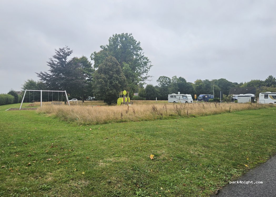 very nice, quiet place to stay for the night when on the road. Spacious, near a childrens playground and grass field with picknick benches. Bakery at 2 minutes walking. Suitable for large camping cars (7.5m and +).