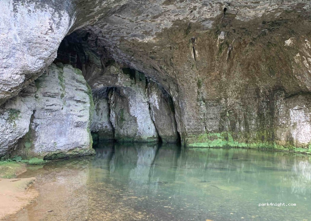 Large car park at the start of the hike near the source of the Lizon and its cave. No service. Service area in Nans Sous Sainte Marie.
