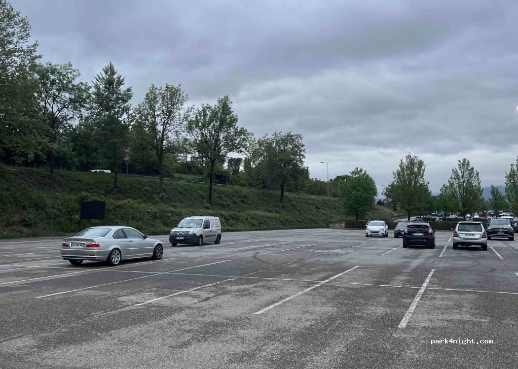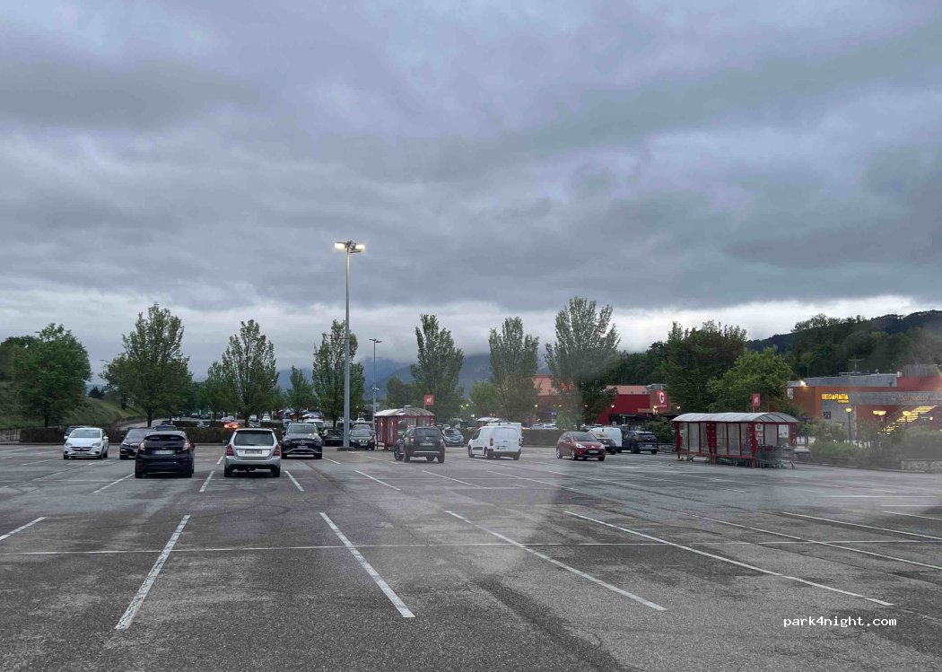 Aparcamiento de centro comercial pero con parada de autobús a 2 minutos. En 25 minutos en bus estás en el centro de Annecy. Ha sitios para autocaravanas de más de 7 metros. Está abierto incluso los domingos.