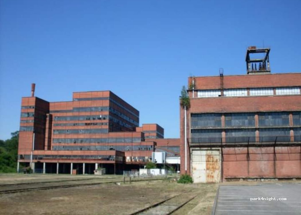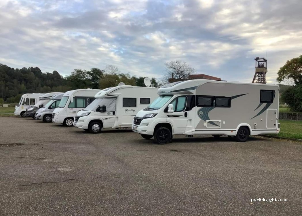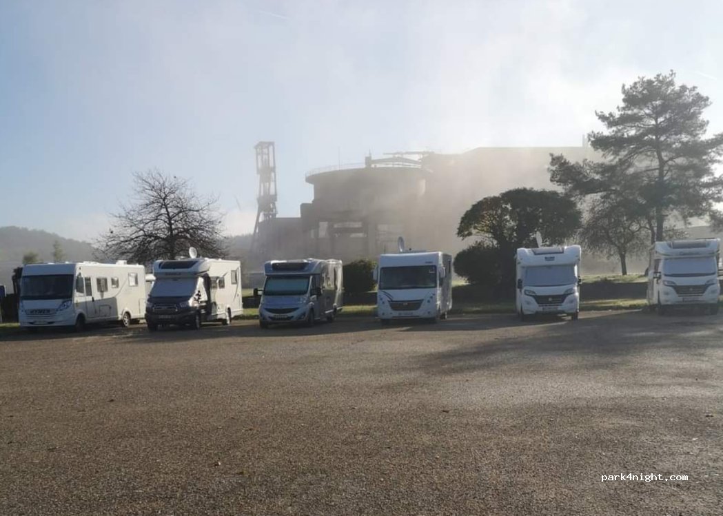 Car park of the Mine museum in the town of Petite-Rosselle (57) - (cafeteria inside and toilets), nice walk around the museum, the city also beautiful for a visit "headframe in the center of the city".
