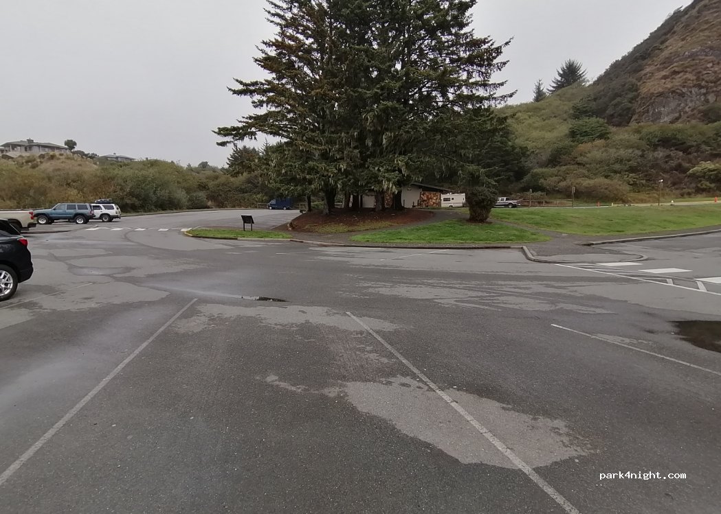 Parking de jour en bord de mer. Les emplacements sont spacieux et relativement plats.