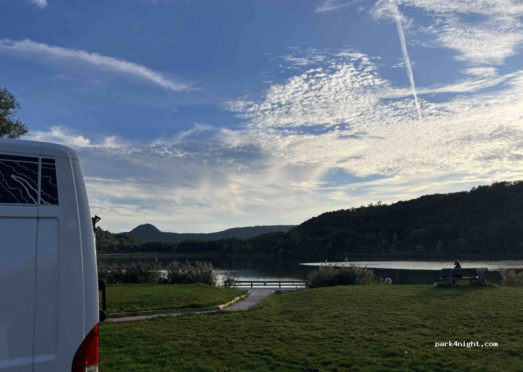 Spot sympa avec vue magnifique sur le lac. 2 petits bémols, déjà 4 fourgons lors de notre passage & route passante très proche. Bien pour une nuit ?