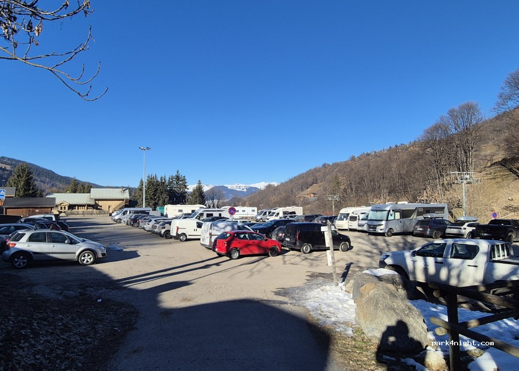 Parking du Martagon. Autorisé 48 heures. Le télécabine de l'Olympe est au bout du parking pour accéder au centre de la station de Meribel