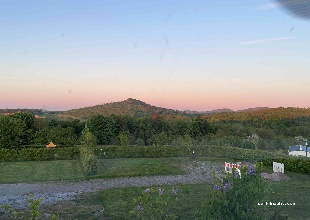 Nieuwe camping (2016) in maat XL. Terrasvormig terrein met weids uitzicht, mooie en grote percelen half gras, half grind, omgeven door beukenhagen als windbescherming, let op: receptie gesloten van 12.00-14.00 uur, broodjesservice, stacaravans met twee volwassenen en twee kinderen ca. 30 euro inclusief douches en elektriciteit, ca. 500 meter van de Brilon Trailground (MTB-routes)