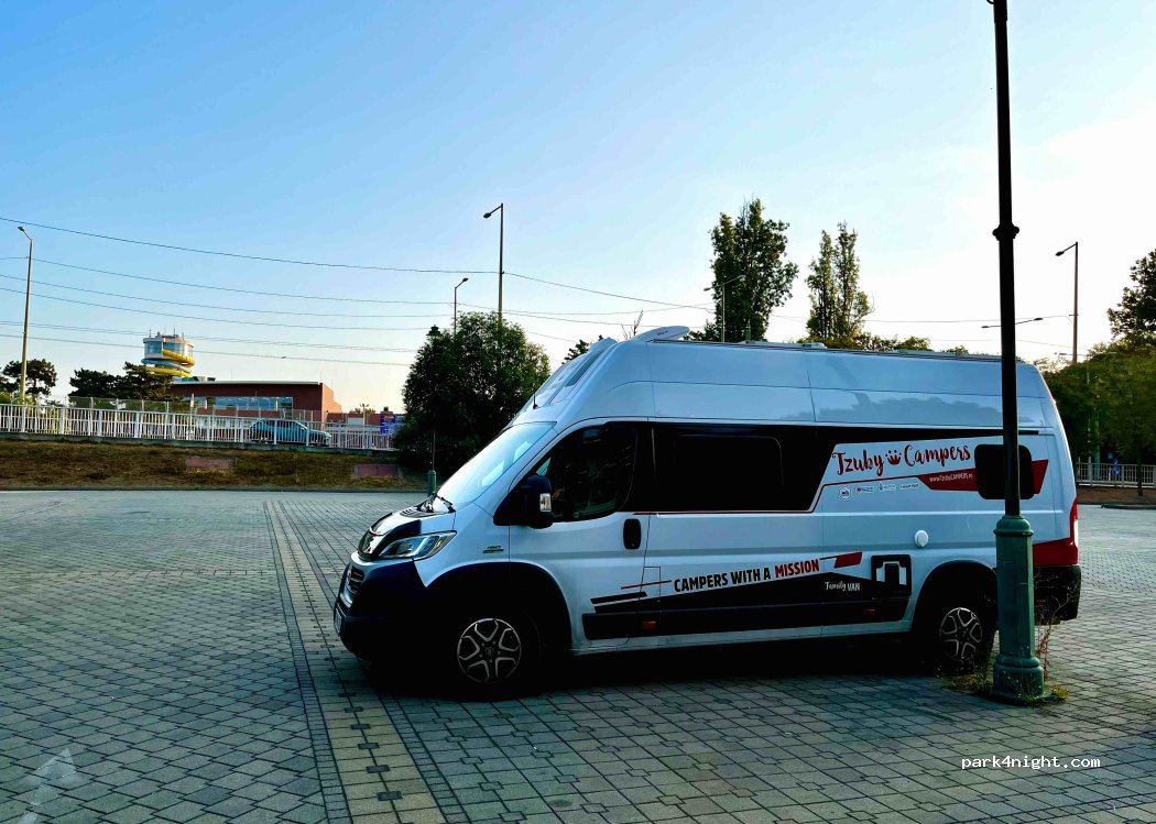 Stayed here for two nights. Safe and peaceful, albeit with a little road noise. No prohibition on motorhomes, just on lorries and buses. Recommended to see the city centre. Well worth the stop to see the amazing architecture of Szeged.