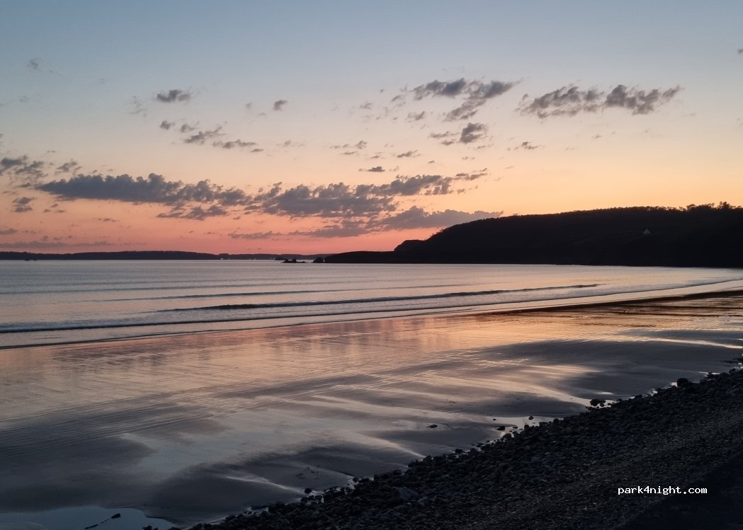 Magnifique endroit au bord d'une très belle grande plage, effectivement plus de barre de hauteur, beaucoup de place, pas mal de camping sauvage dans la baie, stationnement dans un pré en herbe face à la mer, de l'autre côté de la route. un resto de plage qui fait des moules juste à côté, nous n'avons pas testé mais avait l'air sympa idéal pour se poser un jour ou deux.