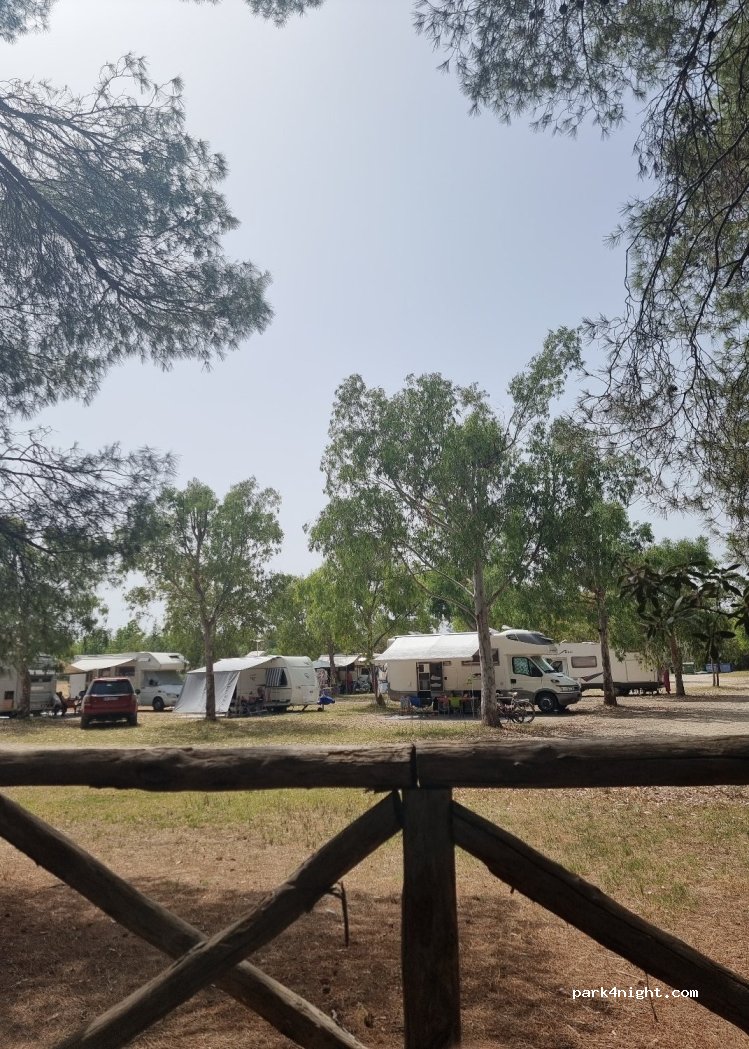 Area sosta 25 euro al giorno. spartano ma con tutti i servizi. 2 euro carico acqua potabile. Abbastanza ombreggiato. Spiaggia raggiungibile dopo passeggiata di 5 minuti sotto una fitta pineta. Alla reception potete chiedere per percorso avventura attrezzato, passeggiate con un bellissimo cavallo di nome Fulmine. All'interno della pineta tavoli da pic nic e parco giochi.