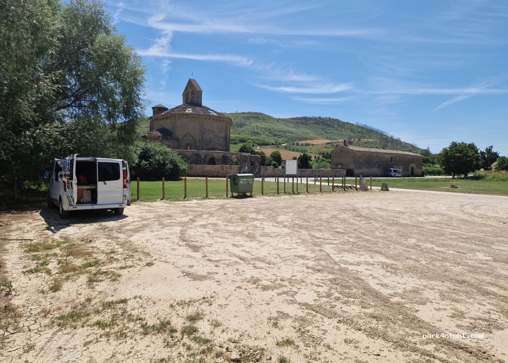 Perfekter Ort, um in der Nähe Pamplonas zu übernachten. Nachts absolute Ruhe (nur die Glocken bimmeln jede 15 min, wirkt beruhigend) Tagsüber ist die nahe Strasse etwas zu hören. Am WE reger Besucherverkehr. Kostenloses Brunnenwasser und Müllentsorgung.