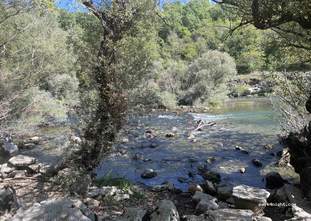 Lonely spot on the river Cetina. The spot is above the dilapidated mill on the rapids. You can hear them very clearly, as if you were parking next to them. But the sound is very pleasant and monotonous. Normal gravel road to the spot, 4x4 not necessarily necessary. Probably very muddy when wet.